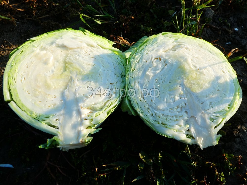 Кочан привлекательного ярко-зеленого цвета, внутри белый.