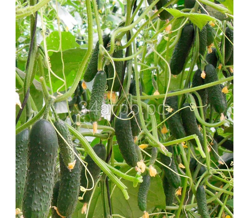 Плоды темнозеленые с блеском, крупнобугорчатые по всей длине, однородные по форме в течение всего периода вегетации, не “бочкуются” при перерастании, держит цветочек. Характерна высокая послеуборочная сохранность плодов, которая позволяет им превосходно выдерживать транспортировку на дальние расстояния.