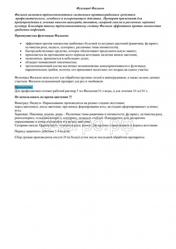 Фалькон – трёхкомпонентный системный фунгицид для зерновых культур, сахарной свеклы и виноградной лозы профилактического, лечебного и искореняющего действия.