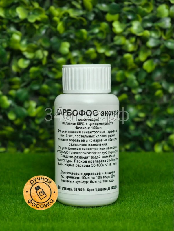 Карбофос Экстра — это не просто инсектицид усиленного действия нового поколения. Это мощная комбинация двух знаменитых действующих веществ (малатион 50% + циперметрин 5%), созданная для тотального уничтожения вредителей там, где другие препараты бессильны.